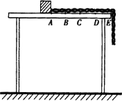 6 L質(zhì)量為6 m的勻質(zhì)繩,置于特制的水平桌面上,繩的一端懸垂于桌邊外,另一端系有一個(gè)可視為質(zhì)點(diǎn)的質(zhì)量為M的木塊,如圖所示.木塊在AB段與桌面無摩擦,在BE段與桌面有摩擦,勻質(zhì)繩與桌面的摩擦可忽略.初始時(shí)刻用手按住木塊使其停在A處,繩處于繃緊狀態(tài),AB=BC=CD=DE=L,放手后,木塊最終停在C處.桌面距地面高度大于6 L.(1)求木塊剛滑至B點(diǎn)時(shí)的速度v和木塊與BE段的動(dòng)摩擦因數(shù)μ;