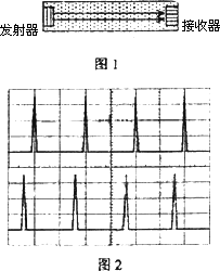 (運動分析+機械波)有一種示波器可以同時顯示兩列波形.對于這兩列波,顯示屏上橫向每格代表的時間間隔相同.利用此中示波器可以測量液體中的聲速,實驗裝置的一部分如圖1所示:管內盛滿液體,音頻信號發(fā)生器所產生的脈沖信號由置于液體內的發(fā)射器發(fā)出,被接受器所接受.圖2為示波器的顯示屏.屏上所顯示的上、下兩列波形分別為發(fā)射信號與接受信號.若已知發(fā)射的脈沖信號頻率為f=2000 Hz,發(fā)射器與接收器的距離為s=1.30 m,求管內液體中的聲速.(已知所測聲速應在1300 ~1600 m/s之間,結果保留兩位有效數(shù)字.)