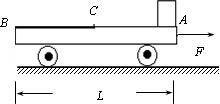 如圖所示,光滑水平地面上停著一輛平板車,其質(zhì)量為2m,長為L,車右端(A點)有一塊靜止的質(zhì)量為m的小金屬塊.金屬塊與車間有摩擦,與中點C為界,AC段與CB段摩擦因數(shù)不同.現(xiàn)給車施加一個向右的水平恒力,使車向右運動,同時金屬塊在車上開始滑動,當金屬塊滑到中點C時,即撤去這個力.已知撤去力的瞬間,金屬塊的速度為v0,車的速度為2v0,最后金屬塊恰停在車的左端(B點).如果金屬塊與車的AC段間的動摩擦因數(shù)為μ1,與CB段間的動摩擦因數(shù)為μ2,求μ1與μ2的比值.