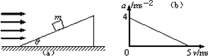 =37°的固定粗糙斜面由靜止開始向下運(yùn)動(dòng),風(fēng)對物體的作用力沿水平方向向右,其大小與風(fēng)速v成正比,比例系數(shù)用k表示,物體加速度a與風(fēng)速v的關(guān)系如圖b.所示.求:(sin37°=0.6,cos37°=0.8)