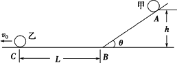 =30°的光滑斜面上高h=5 cm的A點由靜止釋放,同時小球乙自C點以速度V0沿光滑水平面向左勻速運動,C點與斜面底端B處的距離L=0.4 m.甲滑下后能沿斜面底部的光滑小圓弧平穩(wěn)地朝乙追去,甲釋放后經(jīng)過t=1 s剛好追上乙,求乙的速度V0.