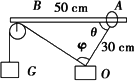 如圖所示,在質(zhì)量為1 kg的重物上系著一條長30 cm的細繩,細繩的另一端連著套在水平棒上可以滑動的輕環(huán),輕環(huán)與棒間的動摩擦因數(shù)為0.75,另有一條細繩,其一端跨過定滑輪(定滑輪的大小可忽略),定滑輪固定在距離圓環(huán)0.5 m的地方.當(dāng)細繩的端點掛上重物G時,圓環(huán)恰好沒滑動,試問: