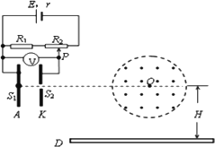 cm的圓形區(qū)域內,有一個水平方向的勻強磁場,磁感應強度大小為B=0.1 T,方向垂直紙面向外.豎直平行放置的兩金屬板A.K相距d=20
