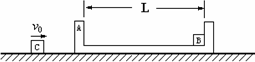 如圖質(zhì)量為mA=0.3 kg、長L=24 cm的方盤A靜置于光滑水平面上,質(zhì)量為mB=0.2 kg的小物塊B放在盤內(nèi)右端,小物塊與盤表面動摩擦因數(shù)μ=0.2,現(xiàn)有一質(zhì)量為mC=0.1 kg的物體C以v0=12 m/s的速度向方盤運動,與之碰撞后不再分開.此后設(shè)小物塊B和盤A每次碰撞都不損耗機(jī)械能,求小物塊B和盤壁的碰撞次數(shù)及小物塊B最終停在盤A中的位置.(g=10 m/s2)