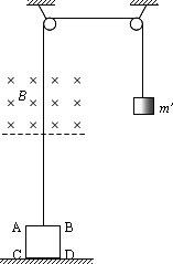 如圖所示,正方形導(dǎo)線框ABCD之邊長l=10 cm,質(zhì)量m=50 g,電阻R=0.1 Ω.讓線框立在地面上,鉤碼質(zhì)量