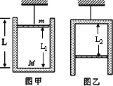 一個內(nèi)壁光滑的圓柱形氣缸,質(zhì)量為M,高度為L,、底面積為S.缸內(nèi)有一個質(zhì)量為m的活塞,封閉了一定質(zhì)量的理想氣體,不計活塞厚度.溫度為t0時,用繩子系住活塞將氣缸懸掛起來,氣缸內(nèi)氣體高為L1,如圖甲所示.如果用繩子系住氣缸底,將氣缸倒過來懸掛起來,氣缸內(nèi)氣體高為L2,如圖乙所示.設(shè)兩種情況下氣缸都處于豎直狀態(tài),求: