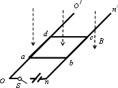 上,導(dǎo)軌間距也為l,電阻不計,on端所接電池的電動勢為ε,內(nèi)阻為r,整個裝置處在磁感強度大小為B方向向下的勻強磁場中.現(xiàn)將電鍵s閉合,求s閉合瞬間
