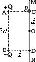 如圖所示,固定于同一條豎直線上的A、B是兩個帶等量異種電荷的點電荷,電荷量分別為+Q和-Q,A、B相距為2d.MN是豎直放置的光滑絕緣細桿,另有一個穿過細桿的帶電小球p,其質(zhì)量為m、電荷量為+q(可視為點電荷,不影響電場的分布.),現(xiàn)將小球p從與點電荷A等高的C處由靜止開始釋放,小球p向下運動到距C點距離為d的O點時,速度為v,已知MN與AB之間的距離為d,靜電力常量為k,重力加速度為g.求:
