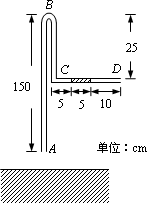 如圖所示的玻璃管ABCD,在水平段CD內(nèi)有一段水銀柱,玻璃管截面半徑相比其長(zhǎng)度可忽略,B端彎曲部分長(zhǎng)度可忽略.初始時(shí)數(shù)據(jù)如圖,環(huán)境溫度300K.現(xiàn)保持CD水平,將玻璃管緩慢豎直向下插入大水銀槽中,使A端在水銀面下5 cm.已知大氣壓75 cmHg.
