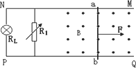 如圖,兩足夠長平行光滑的金屬導(dǎo)軌MN、PQ相距為L,導(dǎo)軌放在水平面上,導(dǎo)軌電阻不計(jì).磁感應(yīng)強(qiáng)度為B的勻強(qiáng)磁場(chǎng)垂直導(dǎo)軌平面向上,金屬棒ab垂直于MN、PQ放置在導(dǎo)軌上,且始終與導(dǎo)軌電接觸良好,金屬棒的質(zhì)量為m、電阻為R.燈泡的電阻RL=3 R,調(diào)節(jié)電阻箱電阻R1=6 R,現(xiàn)給金屬棒施加水平向右的恒力F,使棒由靜止開始運(yùn)動(dòng),試求: