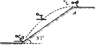 =37°的坡頂A點(diǎn)以速度v0=20 m/s沿水平方向飛出,恰落到山坡底的水平面上的B處.(g=10 m/s2,sin37°=0.6,cos37°=0.8)求: