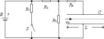 一電路如圖所示,電源電動勢E=28 V,內阻r=2 Ω,電阻R1=12 Ω,R2=R4=4 Ω,R3=8 Ω,C為平行板電容器,其電容C=3.0 pF,虛線到兩極板距離相等,極板長L=0.20 m,兩極板的間距d=1.0×10-2 m.