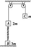 如圖所示,質量為2m的物體A經一輕質彈簧與地面上的質量為3m的物體B相連,彈簧的勁度系數(shù)為k,一條不可伸長的輕繩繞過定滑輪,一端連物體A,另一端連一質量為m的物體C,物體A、B、C都處于靜止狀態(tài).已知重力加速度為g,忽略一切摩擦.