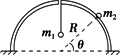 (1)m2小球靜止在球面上時,其平衡位置與半球面的球心連線跟水平方向的夾角為