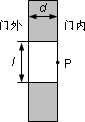 如圖所示,在一厚度為d的門中安放一長度與門厚度相同的玻璃圓柱體,其直徑為l.玻璃圓柱體的折射率為![]()