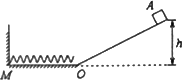 如圖的所示,光滑坡道頂端距水平面高度為h,質(zhì)量為m的小物塊A從坡道頂端由靜止滑下,進(jìn)入水平面上的滑道時(shí)無機(jī)械能損失,為使A制動(dòng),將輕彈簧的一端固定在水平滑道延長線M處的墻上,另一端恰位于滑道的末端O點(diǎn).已知在OM段,物塊A與水平面間的動(dòng)摩擦因數(shù)均為μ,其余各處的摩擦不計(jì),重力加速度為g,求: