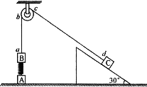 如圖所示,在豎直方向上A、B物體通過勁度系數(shù)為k的輕質(zhì)彈簧相連,A放在水平地面上,B、C兩物體通過細繩繞過光滑輕質(zhì)定滑輪相連,C放在固定的光滑斜面上,斜面傾角為30°,用手拿住C,使細線剛剛拉直但無拉力作用,并保證ab段的細線豎直、cd段的細線與斜面平行,已知B的質(zhì)量為m,C的質(zhì)量為4m,A的質(zhì)量遠大于m,重力加速度為g,細線與滑輪之間的摩擦力不計,開始時整個系統(tǒng)處于靜止狀態(tài),釋放C后它沿斜面下滑,斜面足夠長,求:
