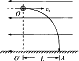 如圖所示,質(zhì)量為m、電荷量為+q的小球從距地面一定高度的O點,以初速度v0沿著水平方向拋出,已知在小球運動的區(qū)域里,存在著一個與小球的初速度方向相反的勻強電場,如果測得小球落地時的速度方向恰好是豎直向下的,且已知小球飛行的水平距離為L,求: