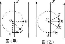 如圖(甲)所示,在場強大小為E、方向豎直向上的勻強電場中存在著一半徑為R的圓形區(qū)域,O點為該圓形區(qū)域的圓心,A點是圓形區(qū)域的最低點,B點是圓形區(qū)域最右側(cè)的點.在A點有放射源釋放出初速度大小不同、方向均垂直于場強方向向右的正電荷,電荷的質(zhì)量為m、電量為q,不計電荷重力、電荷之間的作用力.