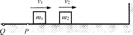 如圖所示,已知水平面上的P點右側(cè)光滑,左側(cè)與滑塊間的動摩擦因數(shù)為μ.質(zhì)量分別為m1和m2的兩個滑塊在水平面上P點的右側(cè)分別以速度v1、v2向右運動,由于V1>V2而發(fā)生碰撞(碰撞前后兩滑塊的速度均在一條直線上).二者碰后m1繼續(xù)向右運動,m2被右側(cè)的墻以原速率彈回,再次與m1相碰,碰后m2恰好停止,而m1最終停在Q點.測得PQ間的距離為L.求第一次碰后滑塊m1的速度.