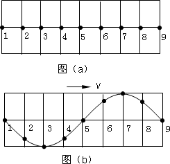 在均勻介質(zhì)中選取平衡位置在同一直線上的9個質(zhì)點,相鄰兩質(zhì)點間的距離均為0.1 m,如圖(a)所示.一列橫波沿該直線向右傳播,t=0時到達質(zhì)點1,質(zhì)點1開始向下運動,振幅為0.2 m,經(jīng)過時間0.3 s第一次出現(xiàn)如圖(b)所示的波形.試寫出質(zhì)點1的振動方程.