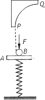 如圖所示,輕質(zhì)彈簧的一端固定在地面上,另一端與質(zhì)量為M=1.5 Kg的薄木板A相連,質(zhì)量為m=0.5 Kg的小球B放在木板A上,彈簧的勁度系數(shù)為k=2000 N/m.現(xiàn)有一豎直向下、大小F=20 N的力作用在B上且系統(tǒng)處于靜止狀態(tài),在B球正上方處由一四分之一內(nèi)壁光滑豎直圓弧軌道,圓弧半徑R=0.4 m,圓弧下端P點距離距離彈簧原長位置高度為h=0.6 m.撤去外力F后,B豎直上升最終從P點切入原軌道,到達Q點的速度為vQ=4 m/s.求: