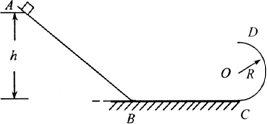 如圖所示,是在豎直平面內(nèi)由斜面和半徑為R的圓形軌道分別與水平面相切連接而成的光滑軌道.質(zhì)量為m的小物塊從斜面上距水平面高為h=2.5 R的A點(diǎn)由靜止開(kāi)始下滑,物塊通過(guò)軌道連接處的B、C點(diǎn)時(shí),無(wú)機(jī)械能損失.求: