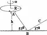 如圖所示,一水平圓盤繞過(guò)圓心的豎直軸轉(zhuǎn)動(dòng),圓盤邊緣有一質(zhì)量m=1.0 kg的小滑塊.當(dāng)圓盤轉(zhuǎn)動(dòng)的角速度達(dá)到某一數(shù)值時(shí),滑塊從圓盤邊緣滑落,經(jīng)光滑的過(guò)渡圓管進(jìn)入軌道ABC.以知AB段斜面傾角為53°,BC段斜面傾角為37°,滑塊與圓盤及斜面間的動(dòng)摩擦因數(shù)均μ=0.5,A點(diǎn)離B點(diǎn)所在水平面的高度h=1.2 m.滑塊在運(yùn)動(dòng)過(guò)程中始終未脫離軌道,不計(jì)在過(guò)渡圓管處和B點(diǎn)的機(jī)械能損失,最大靜摩擦力近似等于滑動(dòng)摩擦力,取g=10 m/s2,sin37°=0.6;cos37°=0.8