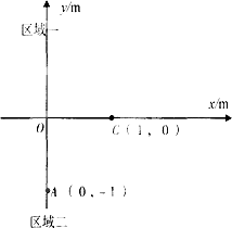 在水平光滑的絕緣桌面內(nèi)建立如圖所示的直角坐標(biāo)系,將第Ⅰ、Ⅱ象限稱為區(qū)域一,第Ⅲ、Ⅳ象限稱為區(qū)域二,其中一個區(qū)域內(nèi)只有勻強電場,另一個區(qū)域內(nèi)只有大小為2×10-2 T、方向垂直桌面的勻強磁場.把一個比荷為2×108 C/kg的正電荷從坐標(biāo)為(0,-l)的A點處由靜止釋放,電荷以一定的速度從坐標(biāo)為(1,0)的C點第一次經(jīng)x軸進入?yún)^(qū)域一,經(jīng)過一段時間,從坐標(biāo)原點O再次回到區(qū)域二.