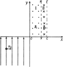 )點以速度v0水平向右射出,經(jīng)過原點O處射入?yún)^(qū)域I后垂直MN射入?yún)^(qū)域Ⅱ,(粒子的重力忽略不計)求: