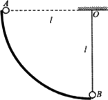 如圖所示,質量為m的小球B,用長為l的細繩吊起處于靜止狀態(tài),質量為m的A球沿半徑為l的光滑1/4圓弧軌道,在與O點等高位置由靜止釋放,A球下滑到最低點與B球相碰,若A球與B球碰撞后立刻粘合在一起,求: