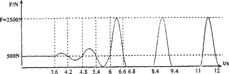 一位蹦床運動員僅在豎直方向上運動,彈簧床對運動員的彈力F隨時間t的變化規(guī)律通過傳感器用計算機繪制出來,如圖所示.結(jié)合圖像,試求: