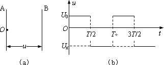 如圖a所示,為一組間距d足夠大的平行金屬板,板間加有隨時間變化的電壓(如圖b所示),設(shè)U0和T已知.A板上O處有一靜止的帶電粒子,其帶電量為q,質(zhì)量為m(不計重力),在t=0時刻起該帶電粒子受板間電場加速向B板運動,途中由于電場反向,粒子又向A板返回(粒子未曾與B板相碰).