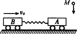 如圖所示,在光滑的水平面上,有兩個(gè)質(zhì)量都是M的小車A和B,兩車間用輕質(zhì)彈簧相連,它們以共同的速度向右運(yùn)動(dòng),另有一質(zhì)量也為M的粘性物體,從高h(yuǎn)處自由下落,正好落至A車并與之粘合在一起,在此后的過程中,彈簧獲得最大彈性勢(shì)能為E.