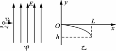 一質(zhì)量為m、帶電荷量為+q的小球以水平初速度v0進入豎直向上的勻強電場中,如圖甲所示.今測得小球進入電場后在豎直方向下降的高度y與水平方向的位移x之間的關(guān)系如圖乙所示.根據(jù)圖乙給出的信息(重力加速度為g),求: