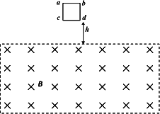 均勻?qū)Ь制成的單位正方形閉合線框abcd,每邊長為L,總電阻為R,總質(zhì)量為m.將其置于磁感強(qiáng)度為B的水平勻強(qiáng)磁場上方h處,如圖所示.線框由靜止自由下落,線框平面保持在豎直平面內(nèi),且cd邊始終與水平的磁場邊界平行.重力加速度為g.當(dāng)cd邊剛進(jìn)入磁場時,