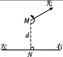 一輛實(shí)驗(yàn)小車可沿水平地面(圖中標(biāo)有左右的直線)上的長直軌道勻速向右運(yùn)動.有一臺發(fā)出細(xì)光束的激光器裝在小轉(zhuǎn)臺M上,到軌道的距離為d=10 m,如圖所示,轉(zhuǎn)臺勻速轉(zhuǎn)動,使激光束在水平面內(nèi)掃描,掃描一周的時間為T=60 s,光束轉(zhuǎn)動方向如圖中箭頭所示,當(dāng)光束與MN的夾角為45°時,光束正好射到小車上,如果再經(jīng)過Δt=2.5 s光束又射到小車上,則小車的速度為多少?