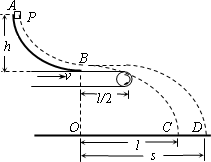 如圖所示,AB是一段位于豎直平面內(nèi)的光滑軌道,高度為h,末端B處的切線方向水平.一個質(zhì)量為m的小物體P從軌道頂端A處由靜止釋放,滑到B端后飛出,落到地面上的C點(diǎn),軌跡如圖中虛線BC所示.已知它在空中運(yùn)動的水平位移OC=l.