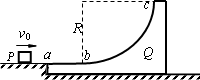 圓弧,位于豎直平面內(nèi).P是另一個小物體,質(zhì)量為m,它與軌道間的動摩擦因數(shù)為μ.物體P以沿水平方向的初速度v0沖上Q的軌道,已知它恰好能到達(dá)軌道頂端c點(diǎn),后又沿軌道滑下,并最終在a點(diǎn)停止滑動,然后與Q一起在水平面上運(yùn)動.
