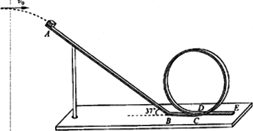 為了研究過(guò)山車(chē)的原理,物理小組提出了下列的設(shè)想:取一個(gè)與水平方向夾角為37°、長(zhǎng)為L(zhǎng)=2.0 m的粗糙的傾斜軌道AB,通過(guò)水平軌道BC與豎直圓軌道相連,出口為水平軌道DE,整個(gè)軌道除AB段以外都是光滑的.其中AB與BC軌道以微小圓弧相接,如圖所示.一個(gè)小物塊以初速度v0=4.0 m/s,從某一高處水平拋出,到A點(diǎn)時(shí)速度方向恰沿AB方向,并沿傾斜軌道滑下.已知物塊與傾斜軌道的動(dòng)摩擦因數(shù)μ=0.5(g取10 m/s2,sin37°=0.6,cos37°=0.8)求: