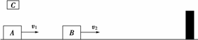 m.開(kāi)始時(shí)A、B分別以v1、v2的速度沿光滑水平軌道向固定在右側(cè)的擋板運(yùn)動(dòng),現(xiàn)將C無(wú)初速地放在A上,并與A粘合不再分開(kāi),此時(shí)A與B相距較近,B與擋板相距足夠遠(yuǎn).若B與擋板碰撞將以原速率反彈,A與B碰撞將粘合在一起.為使B能與擋板碰撞兩次,v1、v2應(yīng)滿足什么關(guān)系?