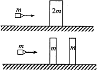 裝甲車(chē)和戰(zhàn)艦采用多層鋼板比采用同樣質(zhì)量的單層鋼板更能抵御穿甲彈的射擊.通過(guò)對(duì)一下簡(jiǎn)化模型的計(jì)算可以粗略說(shuō)明其原因.質(zhì)量為2 m、厚度為2d的鋼板靜止在水平光滑桌面上.質(zhì)量為m的子彈以某一速度垂直射向該鋼板,剛好能將鋼板射穿.現(xiàn)把鋼板分成厚度均為d、質(zhì)量均為m的相同兩塊,間隔一段距離水平放置,如圖所示.若子彈以相同的速度垂直射向第一塊鋼板,穿出后再射向第二塊鋼板,求子彈射入第二塊鋼板的深度.設(shè)子彈在鋼板中受到的阻力為恒力,且兩塊鋼板不會(huì)發(fā)生碰撞不計(jì)重力影響.