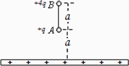 如圖所示,一均勻帶正電的無限長細直棒水平放置,帶電細直棒在其周圍產(chǎn)生方向與直棒垂直向外輻射狀的電場,場強大小與直棒的距離成反比.在直棒上方有一長為a的絕緣細線連接了兩個質(zhì)量均為m的小球A、B,A、B所帶電量分別為+q和+4q,球A距直棒的距離為a,兩球恰好處于靜止?fàn)顟B(tài).不計兩小球之間的靜電力作用.