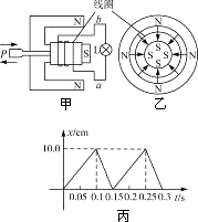 ,方向不變,線圈的總電阻為2 Ω,它的引出線接有8 Ω的電珠L,外力推動線圈的P端,使線圈做往復運動,便有電流通過電珠,當線圈向右的位移隨時間變化的規(guī)律如圖丙所示時(x取向右為正).