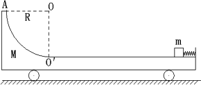 如圖所示,光滑水平面上有一質(zhì)量M=4.0 kg的平板車,車的上表面是一段長L=1.0 m的粗糙水平軌道,水平軌道左側(cè)連一半徑R=0.25 m的1/4光滑圓弧軌道,圓弧軌道與水平軌道在