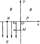 如圖所示,在直角坐標系的第一、二象限內有垂直于紙面的勻強磁場,第三象限有沿y軸負方向的勻強電場,第四象限內無電場和磁場.質量為m、帶電量為q粒子從M點以速度v0沿x軸負方向進入電場,不計粒子的重力,粒子經N和x軸上的P點最后又回到M點.設OM=OP=L,ON=OP=L,求: