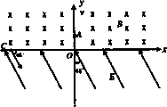 空間存在著以x=0平面為分界面的兩個(gè)勻強(qiáng)磁場(chǎng),左右兩邊磁場(chǎng)的磁感應(yīng)強(qiáng)度分別為B1和B2,且B1∶B2=4∶3,方向如圖所示.現(xiàn)在原點(diǎn)O處一靜止的中性原子,突然分裂成兩個(gè)帶電粒子a和b,已知a帶正電荷,分裂時(shí)初速度方向?yàn)檠?I>x軸正方向,若a粒子在第四次經(jīng)過y軸時(shí),恰好與b粒子第一次相遇.求: