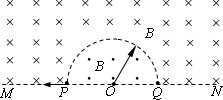 如圖所示,直線MN下方無磁場,上方空間存在兩個勻強磁場,其分界線是半徑為R的半圓,兩側的磁場方向相反且垂直于紙面,磁感應強度大小都為B.現(xiàn)有一質量為m、電荷量為q的帶負電微粒從P點沿半徑方向向左側射出,最終打到Q點,不計微粒的重力.求: