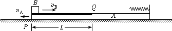 在光滑的水平面上有一質(zhì)量M=2 kg的木板A,其右端擋板上固定一根輕質(zhì)彈簧,在靠近木板左端的P處有一大小忽略不計(jì)質(zhì)量m=2 kg的滑塊B.木板上Q處的左側(cè)粗糙,右側(cè)光滑.且PQ間距離L=2 m,如圖所示.某時(shí)刻木板A以υA=1 m/s的速度向左滑行,同時(shí)滑塊B以υB=5 m/s的速度向右滑行,當(dāng)滑塊B與P處相距