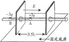 3.5L.槽內(nèi)有兩個質(zhì)量均為m的小球A和B,球 A帶電量為+2q,球B帶電量為-3q,兩球由長為2L的輕桿相連,組成一帶電系統(tǒng).最初 A和B分別靜止于左板的兩側(cè),離板的距離均為L.若視小球為質(zhì)點,不計輕桿的質(zhì)量,在兩板間加上與槽平行向右的勻強電場E后(設(shè)槽和輕桿由特殊絕緣材料制成,不影響電場的分布),求:(1)球B剛進(jìn)入電場時,帶電系統(tǒng)的速度大;